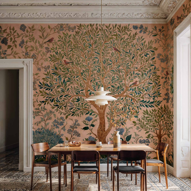 Varanasi Tree, Peach, Coordonne Tapet cu design elegant pentru un interior primitor