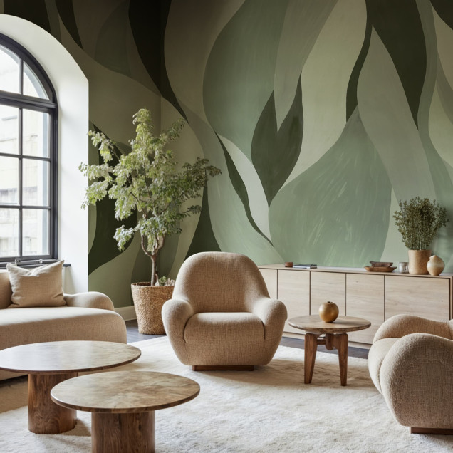 Velvet Flames, Green, Rebel Walls Fototapet Verde - Design Modern pentru Casa Ta