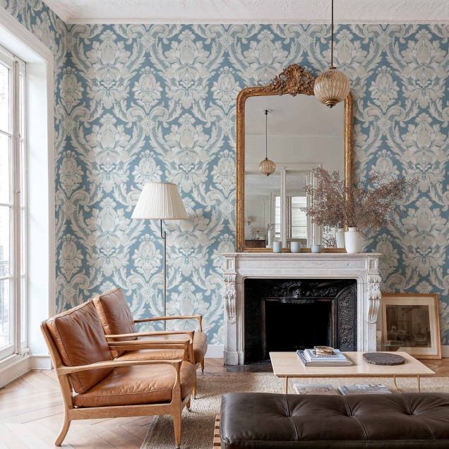 Transformă-ți casa cu acest tapet elegant. Modelul damasc venețian în nuanțe de safir adaugă un aer sofisticat oricărui interior. Ușor de aplicat, rezistent și cu un design clasic reinterpretat.