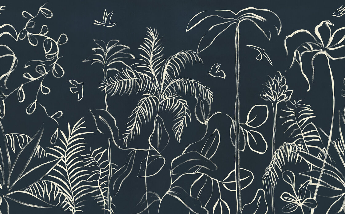 Vestured Line - Blue, Photowall Fototapet Floral Albastru - Eleganță și Stil