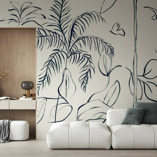 Adaugă un strop de natură artistică în casa ta! Acest fototapet elegant cu linii fine și design floral va transforma orice cameră într-un spațiu relaxant și sofisticat.