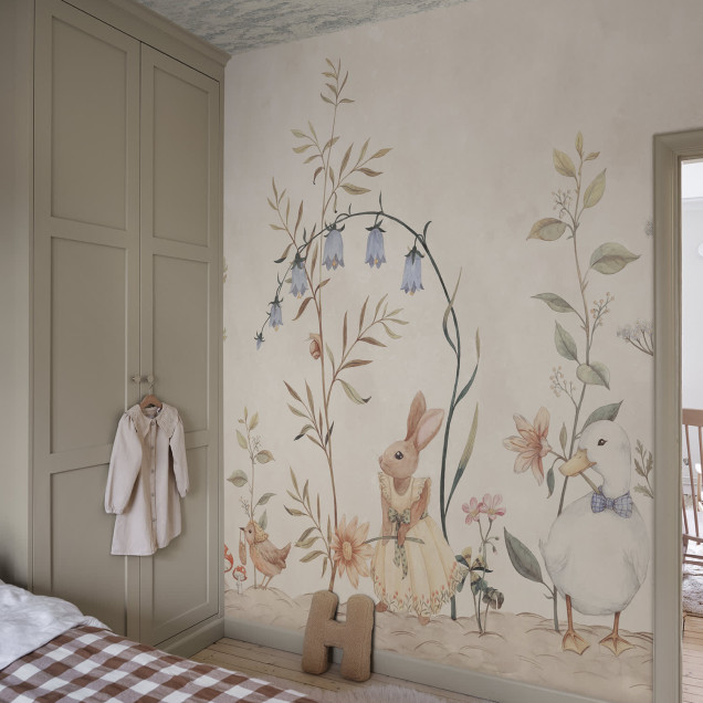 Vilhelmina, Beige, Sandberg Tapet bej cu ilustrații delicate pentru camera copilului