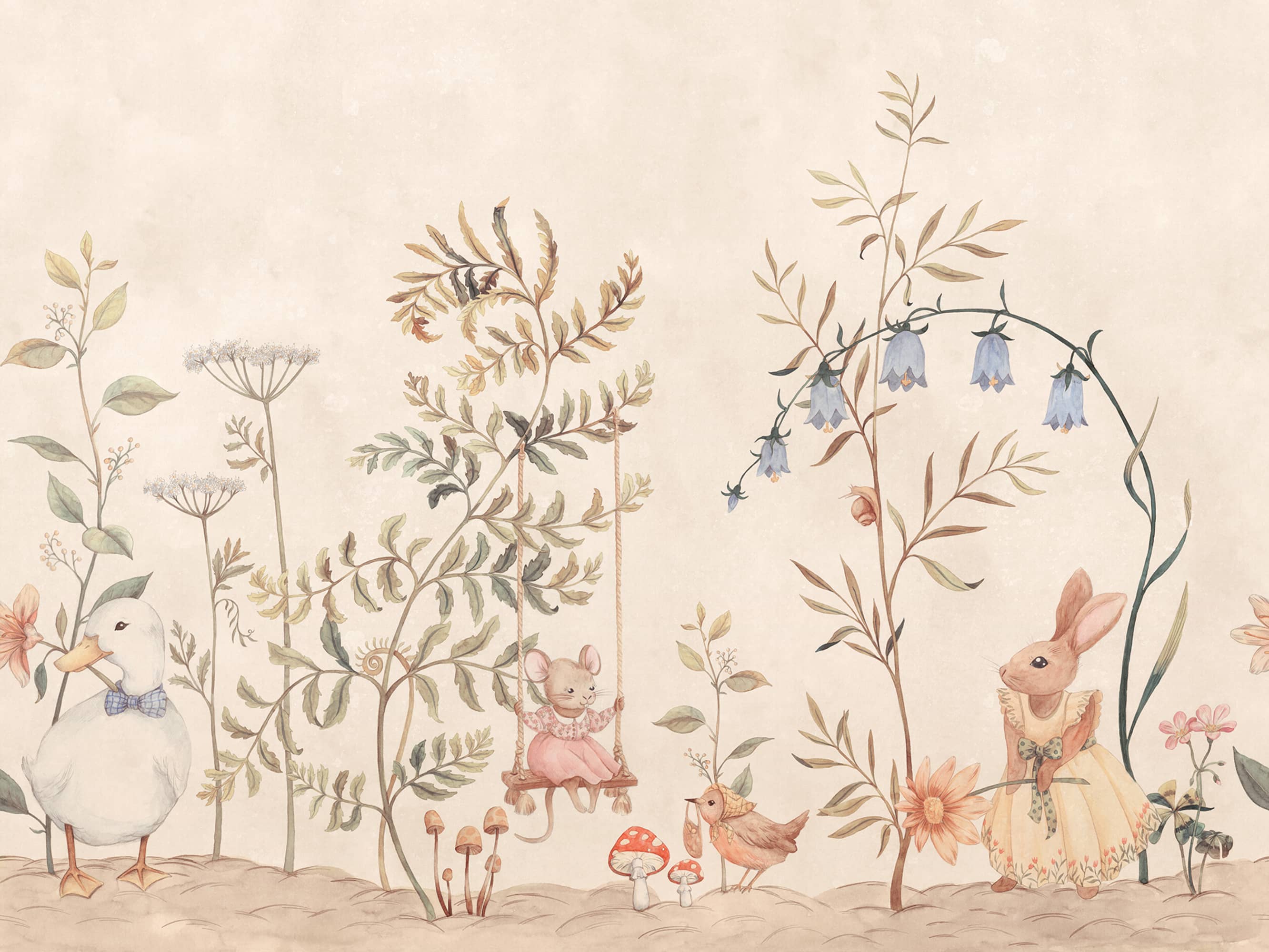 Adaugă un strop de magie în camera copilului cu acest tapet bej încântător. Design delicat cu ilustrații de animale și flori, perfect pentru un decor cald și primitor.