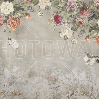 Vintage Flower Wall - Blue, Photowall Fototapet Floral Vintage - Eleganță și Rafinament