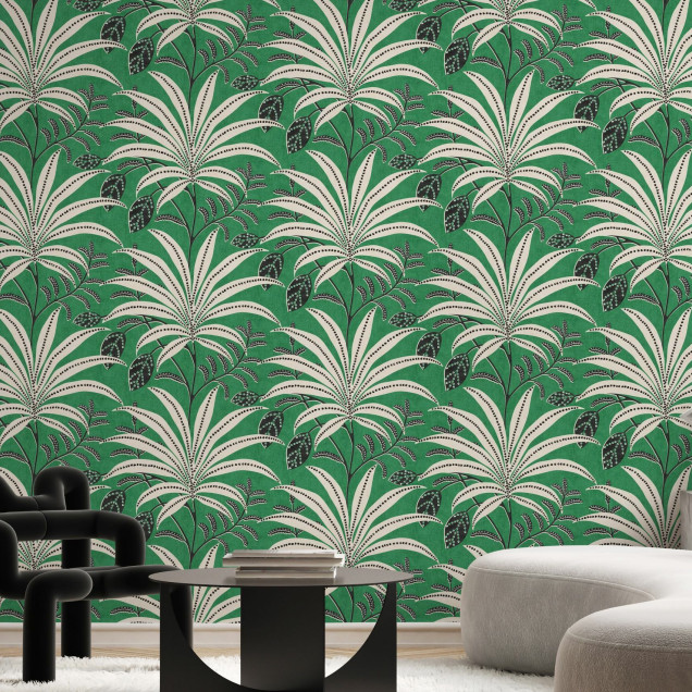 Acest fototapet aduce un strop de natură în casa ta, cu frunze luxuriante pe un fundal verde proaspăt. Perfect pentru un decor modern și plin de viață.