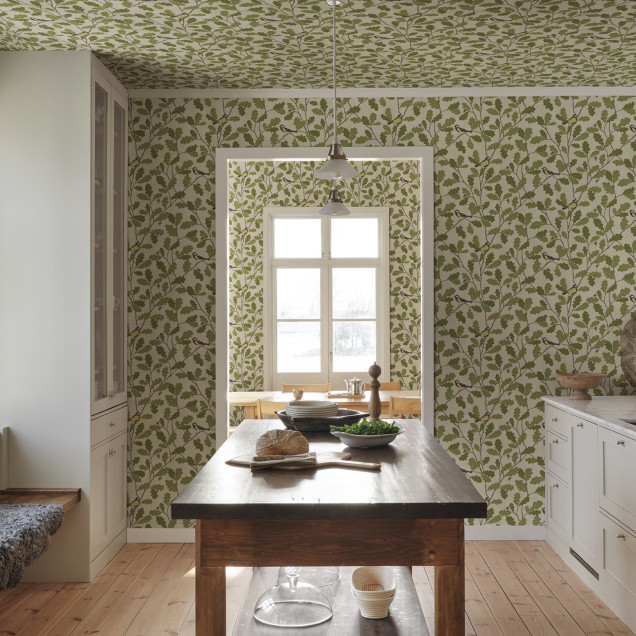 Waldemar, Green, Sandberg Tapet cu Model de Frunze Verzi și Păsări