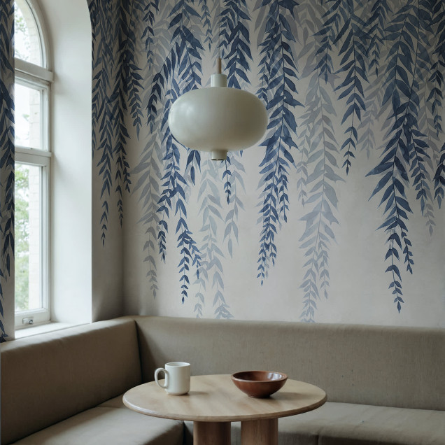 Whispers of Bamboo, Blue, Rebel Walls Fototapet cu Frunze Albastre - Eleganță Naturală