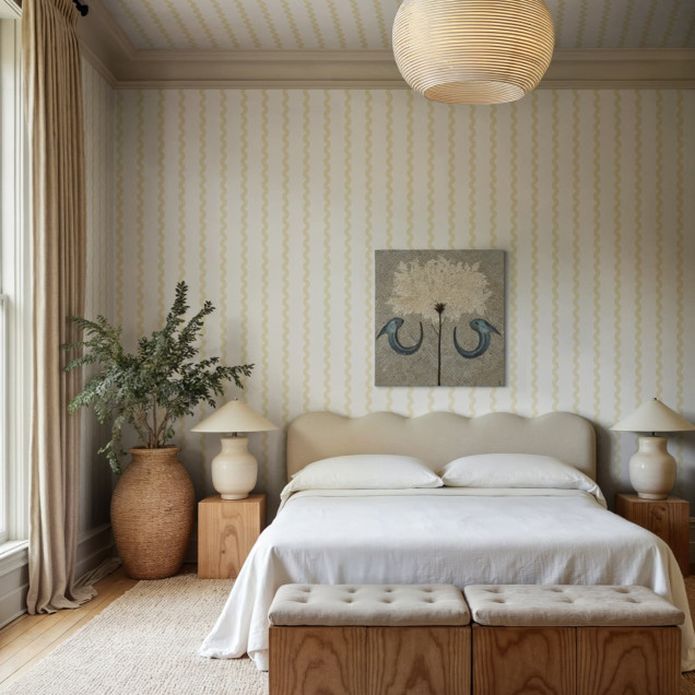 Wobbly Stripe, Cloud Dancer, Rebel Walls Tapet cu Dungi Ondulate pentru un Interior Vesel