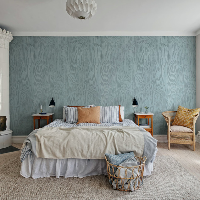 Wood Shades, Blue, Rebel Walls Tapet și Fototapet cu efect lemnos în nuanțe de albastru