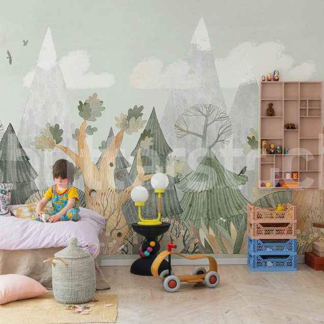 Woodland Tales, Day, Rebel Walls Fototapet cu Peisaj de Pădure pentru Copii